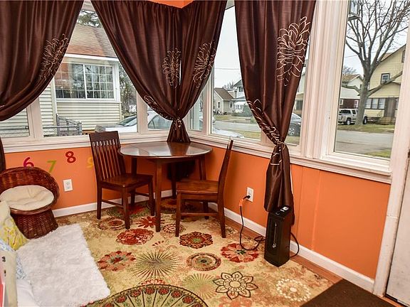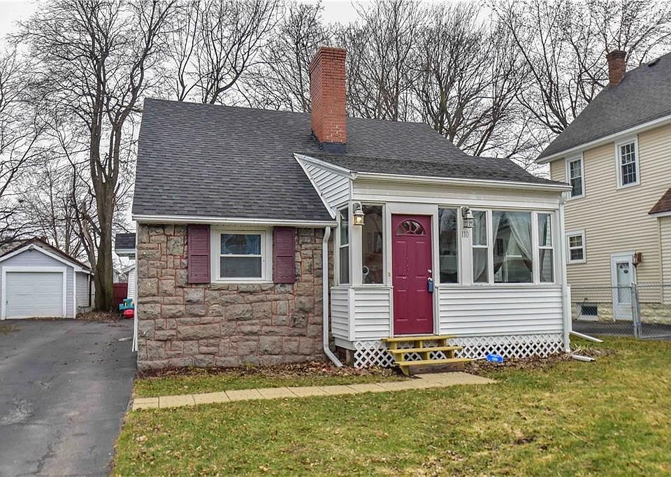 Storybook Cape Cod nestled on a neighborhood street in Greece with all of the updates you will love! Spacious kitchen w/ dining area ~ 42' cabinets w/ crown molding, lots of counter space, ceramic tile flooring, stainless steel appliances included! Cozy Living room w/ hardwood floors & decorative fireplace ~ Tastefully remodeled bathroom w/ ceramic tile flooring & tub surround & European style vanity ~ Large enclosed front porch ~ Updated windows & doors ~ Low maintenance vinyl siding ~ Tear off roof approx 7 years old ~ Fully fenced & private yard ~ 1 car detached garage ~ Call today to see this beautiful home!