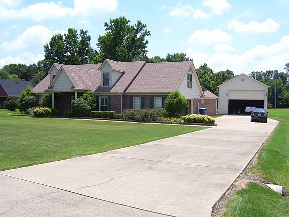 This spacious home is in a quiet neighborhood just 2 minutes from Collierville, TN. It sits on 1.5 acres with a pond and 12'x12' gazebo. It features a split-bedroom floorplan, vaulted ceilings in the living room and master bedroom, as well as plantation blinds throughout the home. The master bathroom has a large bathtub, walk-in shower and very large walk-in closet. There is a large expandable space upstairs. The detached garage/shop is 24'x36' with 14' ceiling, making it perfect for RV parking.