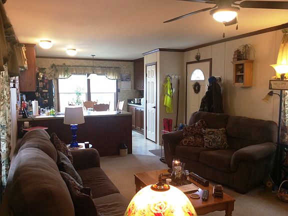Comfortable and affordable living in this very attractive 2011 Skyline singlewide. Home features open kitchen, living and dining space and two bedrooms with ample closet space. Located in a quiet country park with a low park rent of $175.00 which includes water, sewer and garbage.