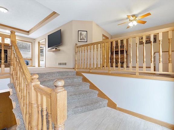 Sitting atop a quiet cul-de-sac, this is not your typical split entry! This three bedroom, 2.5 bath home features a welcoming entry with wide stairs up to living room with fireplace and tall windows. Countertops and backsplash have been updated in the spacious kitchen and all stainless steel appliances are included. In addition to eat-in kitchen dining area, there is also an additional formal dining room or flex space. Down the hall leads to the main bathroom, with updated tile flooring and countertops, primary bedroom with walk-in closet and ensuite and two additional bedrooms. Lower level offers family room space, half bath, laundry room and easily accessible storage under stairs. 23x28 garage provides storage space in addition to two vehicles. Enjoy the low maintenance landscaping and fully fenced yard. Just minutes from interstate, grocery, dining and trails.
