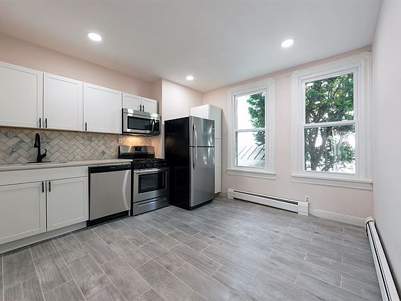 A true tenant's dream, a recently renovated two bedroom unit available now. Newly renovated flooring and tile throughout, custom energy efficient windows, stainless steel appliances, quartz countertop, Carrara marble backsplash, as well as a recently redone bathroom. The sunny master bedroom boasts charming bay windows, and the second bedroom faces the private backyard. Washer/dryer room in building. Short walk to Central Avenue, where you will find restaurants, cafes, grocery stores and more. Easy commute into NYC via bus stop around corner, as well as JSQ path.