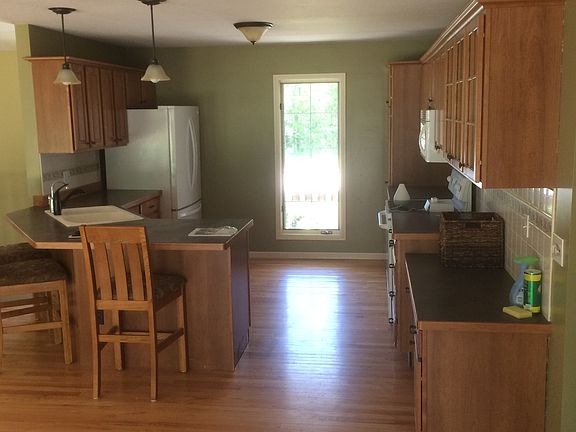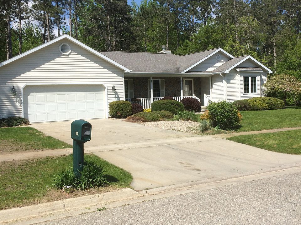 Open concept living room, dining room, and kitchen with cathedral ceilings and gas fireplace. Master suite including large walk in closet, private bath, and French doors leading to hot tub and deck. 2 large additional bedrooms on main floor. Huge finished family room in cozy dry 2 x 6 treated insulated basement includes built in surround sound system and very large additional finished room with closet. Semi finished craft room / shop also in basement. In-ground sprinkling system and electronic pet fence included. Large tract of undeveloped land to back of property affording tons of wildlife and very relaxing privacy. Ph. (989) 506-0772