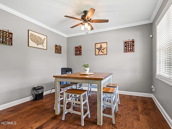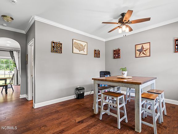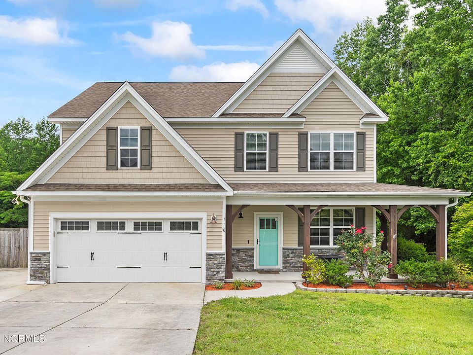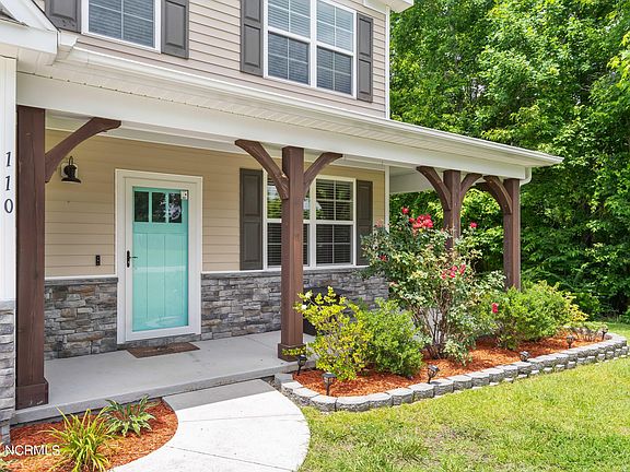 Welcome to the 110 Cherrybark. Located a short drive from New River Air Station, tucked in the quiet neighborhood of Magnolia Grove. A short drive to North Caorlina's beaches with NO CITY TAXES! This 3 story home has everything you need, including an extended driveway with a two car gagrge. Stepping in from the wrap around covered porch, you will see a formal dining room to your right. Following the hall before you get to the main living space, you will find a half bath to your right and an entry way from the garage. Located at the back of the house, the kitchen, complete with a walk in pantry, opens up to a spacious living room. Moving to the second story, you will find 3 ample sized bedrooms, a full hall bath, and a seperate laundry room. The large primary suite is attahced to a private bathroom, including a walk in shower and soaking tub. At the door at the end of the bathroom, you will find a walk-in closet ready to be filled with clothes! Finally, moving up to the third story, there is a bonus room with a spacious storage closet! Wrapping up the tour with a fully fenced in back yard, complete with a pergola over the patio, and large workshop!
