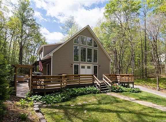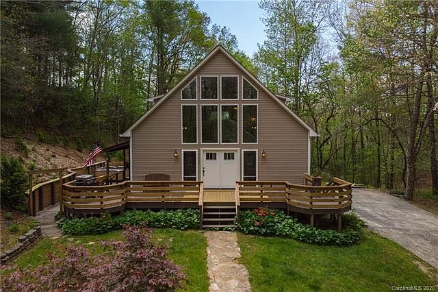If you are looking to simplify life by buying a home that has been remodeled and you appreciate outdoor living spaces that allow you to take in the surrounding wooded, one acre lot, then this home may be just right for you. Located in the quiet subdivision of Chestnut Cove, just 20 minutes from Downtown Brevard, this home has so much to offer with new doors, lots of new windows, kitchen appliances, flooring, tiled showers, beautiful cabinetry, HVAC and more. Gather around the center island in the open concept living area with its gorgeous windows that flood the space with light! Family and guests will enjoy the two main floor bedrooms and full bath. Upstairs the 550 SF master suite has it's own deck, master bath with tiled shower and walk-in closet. Outside entertain on the decks surrounding two sides of the home. Enjoy the flagstone patio area with it's hot tub and a fire pit for cool mountain nights! Store extras in the new shed. Stroll down the newly paved, gently sloping driveway!