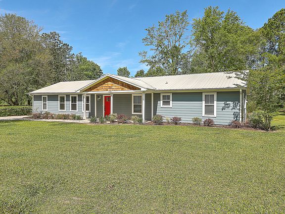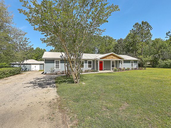 Welcome to 110 Chiles, a stunning 4 bedroom, 3 bath ranch home that was extensively renovated in 2019 with a long list of custom updates. Immediately entering the home you will notice the open concept boasting gleaming LVP throughout, shiplap walls and detailed trim. The kitchen is gorgeous and features stainless appliances, large island with pendant lighting and double inlay sink, an abundance of soft touch cabinets and drawers, tile backsplash, and built-in bench for a kitchen table. Just off the family room is a built in bar with wine cooler. The floor plan is perfect for house guests with one of the 4 bedrooms and bathrooms located on the kitchen side of the house. On the other side of the home are 3 bedrooms including the master with oversize bathroom that features doublesink vanity, soaking tub, walk-in shower, exhaust fan with bluetooth (for those who need a little music in the morning), and roomy walk-in closet. Outside is a great place for entertaining with built in firepit and screened area with hanging string lights. The detached building/workshop is equipped with electrical for the big projects you are working on. With almost an acre of land there is plenty of room for another detached garage, pool with pool house, or even a guest house. Other features include laundry room with soaking sink and built in cabinets, tile in the 2 guests bathrooms, and NO HOA to worry about! Home was also recently pressured washed. This home has it all - the only thing missing is YOU!!