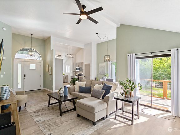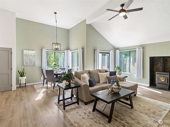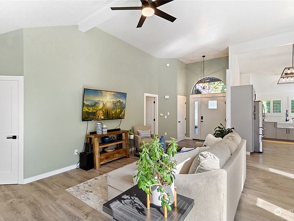 Welcome to your radiant move-in ready dream home! Easy one-level living awaits in this spacious floor plan with soaring vaulted ceilings. Exquisite Chef’s Kitchen features stainless appliances, gas range, sleek subway tile, wet bar, custom shutters, new cabinets & countertops. Large primary suite offers a walk-in closet, remodeled bath & double vanity. Enjoy the many upgrades incl. efficient Heat Pump-A/C, new flooring, cozy pellet stove, modern lighting, new doors & woodwork. Relax with peaceful forest views from the sunny deck & unwind in the private fenced yard with perfect garden space, storage, RV/boat parking, plus a 2-car garage. All in a convenient & quiet neighborhood that is close to schools, shopping, library, parks & beaches!