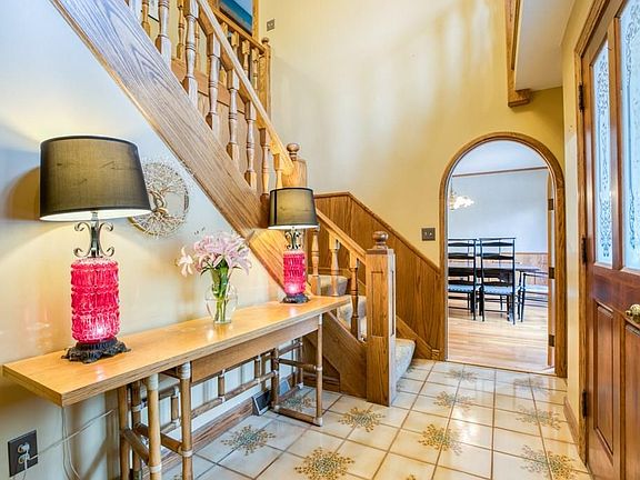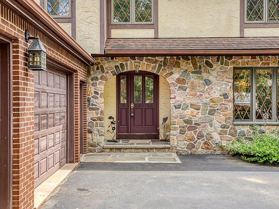 Come see the Old World Charm of this custom built English Tudor home on quiet cul-de-sac with extra lot. Your eyes are going to be drawn to exquisite carpentry & craftsmanship like leaded stained glass and archways. The sprawling Kitchen has Stainless Steel appliances, Butcher Block Island, Quartz countertops, & a Hot Shot. Sunken Livingroom boasts of vaulted beamed Cedar ceilings, Fieldstone fireplace, Oak paneling, custom built-in cabinetry, and sliders to deck. Vacation at home with your own Sauna/Hot Tub room. Custom Oak Grand Staircase leads you to a library with built-ins and seating area. Master bedroom with gym, en-suite, and split level room for home office. There's an additional 2 bedrooms & full bath. Finished basement with kitchenette. The 3 Season room leads out to beautiful resort like backyard with patio, pool house, 2 electric awnings, & 20x40 in ground pool! Outdoor shed with electric & water. Yurt, and separate fenced in area for your pet!