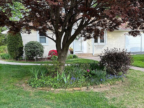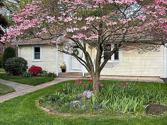 Welcome to this single story, two bedroom, ranch-style home which includes an oversized living room and dining room with vaulted ceilings and 3-season porch, a primary bedroom featuring a full bath and walk-in closet.