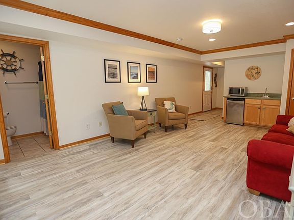 HUGE PRICE REDUCTION!!! Dream home opportunity in Chicahauk with an easy walk to the lifeguarded Beach! You can own this amazing house in one of the best communities on the East Coast. Chicahauk community offers coastal beach living with easy access to the beach, community tennis, park, playground, beach parking, shopping, restaurants, schools and so much more! Fantastic layout starting with a ground floor game/rec room with a full bathroom and kitchenette offering a wet bar, mini fridge and microwave, walking out to the beautiful custom built gunite swimming pool with brick coping stone and a ‘Pool Hut’ with potential as a maxed out Tiki Hut! Tons of poolside deck and lounging area with a quiet and relaxing Hot Tub experience all in the beautiful maritime setting Chicahauk and Southern Shores has to offer. This split level design offers two ensuite bedrooms on the first level, one ensuite bedroom along with two more large bedrooms sharing the 5th bathroom, the primary ensuite on its own level, finished off with the top floor boasting hardwood floors, an open floor plan with kitchen, living and dining room, custom built coffee/wine bar, breakfast bar counter seating, along with a powder room. The top level deck overlooks the swimming pool with a beautiful covered outside living area. Join the Southern Shores Civic Association (SSCA) for an additional $95 annually for all Southern Shores beach accesses, soundside marinas with park settings and boat ramps, additional tennis courts and beach parking areas. Sold fully furnished and ready to go with a few excluded items. Check out all of the property updates listed in the associated documents, most recent is the new Fortified Roof. Schedule your opportunity to see this house, vacant until June 4th, then available only on Sunday turnover days. Ground floor LVP to be replaced fall/winter 2023 due to improper installation.