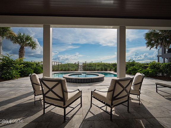 UNDER CONTRACT, SELLER IS ACCEPTING BACKUPS! Gulf front luxury on Cape San Blas. Custom built by Windolf Construction, this 5 bedroom, 5 full bath, 2 half bath home offers 4,505 square feet of heated and cooled living space. A one owner property, it has never been used as a vacation rental. Enjoy a heated pool with attached hot tub, private beach access, custom gated entry, and two separate garages. Covered and open lounging areas surround the pool, creating the perfect space for outdoor living. Inside, professionally designed décor and art from a Tallahassee interior designer complement light filled living areas and stunning Gulf views. Located on Clearwater Drive, this property offers privacy and seclusion while remaining close to Cape San Blas shops and dining, and just a short drive to St. Joseph Peninsula State Park. Experience a lifestyle where mornings begin with walks on the beach, afternoons are spent by the pool, and evenings end with unforgettable sunsets over the Gulf.