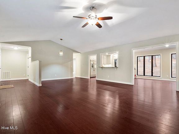 Tucked away among the lovely trees, this brick ranch is nestled in the desirable Southern Pines Country Club community. Step inside to an open, inviting layout featuring a vaulted-ceiling living room centered around a cozy fireplace, seamlessly flowing into the dining area and updated kitchen with granite countertops, stainless steel appliances, and peninsula seating. The spacious primary suite includes dual closets and an ensuite bath with a walk-in shower. Two additional bedrooms provide flexible space for guests, a home office, or hobbies. Outside, enjoy a large fenced backyard with a patio perfect for relaxing or entertaining. Conveniently located near downtown Southern Pines, golf, dining, and local amenities—this home offers the best of comfort, convenience, and classic charm.