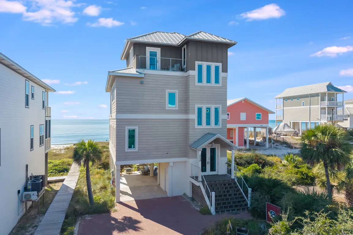 Located directly on the Gulf of America, Singing Waves (formerly Mar-A-Lago) is a beautifully updated beachfront home on North Cape San Blas offering panoramic Gulf views and a peaceful coastal lifestyle. This three-level retreat complete with newly refurbished elevator, combines timeless style with modern comfort, featuring wrap-around decks, private beach access, ...