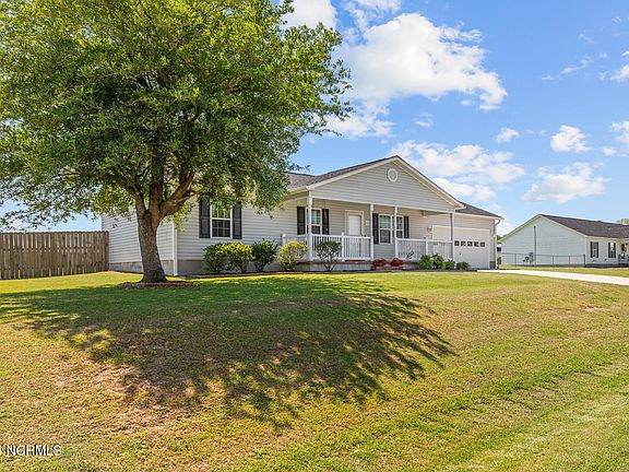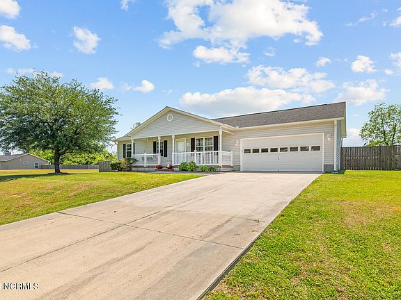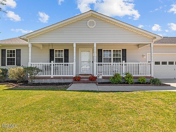 ***$2000 ''USE AS YOU CHOOSE'' BUYER ALLOWANCE & $750 ALLOWANCE TOWARDS BUYER'S CHOICE OF HOME WARRANTY*** Welcome to quiet, country living at its best in Mills Farm! This lovely 3BD, 2 FULL BATH HOME is in a low traffic, one road neighborhood on Belgrade-Swansboro Rd, off of Hwy17 & it's the ideal home that you've been hoping would come! A short drive to military bases, schools, parks, restaurants, grocery, & retail; central to Jacksonville, New Bern, Swansboro, & Emerald Isle. 2-car garage w/ keypad entry & remotes, lots of shelving, interior entry to the home & a side door to the outside. Walk up to the spacious, covered front porch with space for chairs or a swing so you can sit & talk with your company for a while. Walk through the front door & find a vaulted ceiling w/ dimmable recessed lighting, coat closet, & wide-open living room. There's fresh paint throughout most of the home & flooring was updated to a lovely wood-laminate & spans throughout the commons areas & laundry room. White cabinets update the kitchen space w/ lots of storage AND there's a pantry to boot! The dining space & hallway have a beautiful farmhouse style chair railing that really elevates the space. A full-bath is across the hall from two of the bedrooms & the primary bedroom has a full ensuite bathroom w/ dual vanity, & two walk-in closets. Out back you have the HUGE yard of your dreams w/ a privacy fence, raised garden beds, yard space for plenty of fun & a wide gated patio-style deck w/ a string lit gazebo to entertain or relax to your hearts content. Schedule your showing TODAY and make this home YOURS! *If you'd like more funds towards closing costs, you can get another $2,000 in the form of a lender credit w/ preferred lender, call LA for more information