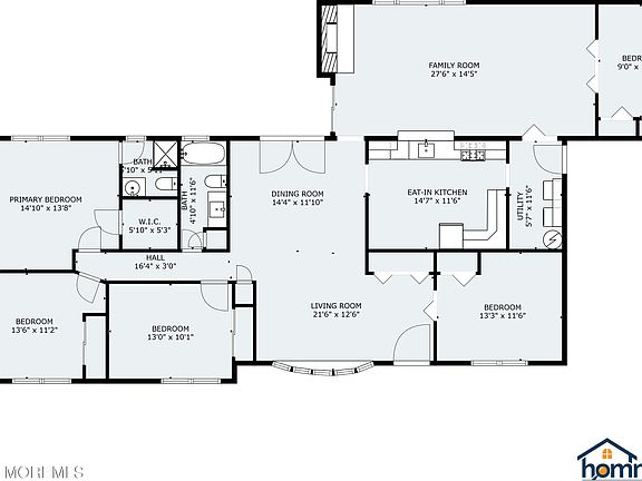 Welcome to this expansive 5-bedroom, 2-bathroom ranch-style home in the highly desirable Cherry Quay neighborhood. Boasting a flexible, divided bedroom layout, this property is ideal for various lifestyles—whether you need space for a home office, an in-law suite, or a craft room. The well-designed kitchen features elegant tile flooring and granite countertops, perfect for the home chef, and includes a convenient pass-through to the generous family room with a cozy gas fireplace that can easily be converted back to wood-burning.