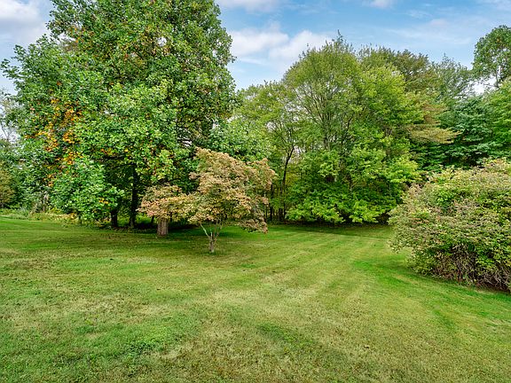 Don't miss this picturesque oversized Ranch featuring 4 bedrooms, including a first-floor Master en Suite! With 1,506 sq. ft., 2 full baths, a 1-car attached garage, and set on a gorgeous .61-acre lot, this move-in ready gem of a home has it all. The charming covered front porch is perfect for relaxing, while inside a spacious 21'x14' Living Room with cozy wood-burning fireplace welcomes you home. The Kitchen is filled with morning sun and flows into the Dining Room, giving you the choice of a breakfast nook or expanded dining space. The Master en Suite addition offers room for a king bed, 2 closets, and a bright full bath. Three additional bedrooms, a second full bath, and a first-floor laundry add comfort and convenience. The basement provides 2 more rooms (A/C but no built-in heat) plus abundant storage. Step outside to your backyard oasis with a sprawling 26'x20' patio and a deep yard bordered by woods. Let the entertaining begin! Enjoy peace of mind with Central Air (all A/C ductwork cleaned in 2024), generator, Peerless Boiler, roof, and siding all updated 2008-2011. Other extras include hardwood under carpet in most of home (not addition off back), central vac, energy audit with added insulation, vinyl windows, and an impressive circular driveway with ample parking. The nearby firehouse doesn't sound sirens until well away from the station. This spacious Ranch is the perfect place to make your home!