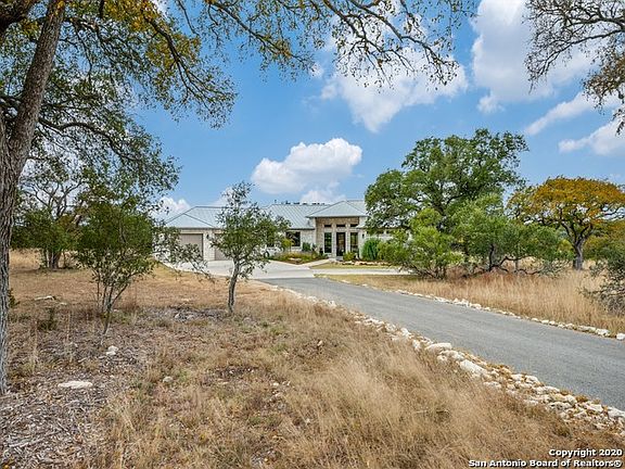 Secluded beautiful Hill Country retreat in the magnificent lakeside community of Mystic Shores in the Texas Hill Country. Built with every detail in mind, this 3/3.5, 2821sf, 1 story home features 100% masonry, metal roof, an oversized 3 car garage with single drive-through and additional attic storage. This home's has 10ft ceilings throughout with large windows displaying the expansive views with a 12ft wide sliding door to the large outdoor patio where you can watch hillside sunsets. The kitchen features a stainless countertop island, large walk-in hidden pantry, Jenn-air gas cooktop, French door fridge with dual ice makers. and whole house reverse osmosis system. Bring your pets, horses welcome, and explore the 5.78 acres of beautiful terrain that back up to Devil's Hollow. Located in the highly desired neighborhood of Mystic Shores with amenities including two community pools, lakeside park, sports courts (basketball, volleyball and pickle ball), community boat ramp, community boat and RV storage, beautiful nature preserve with walking trails.