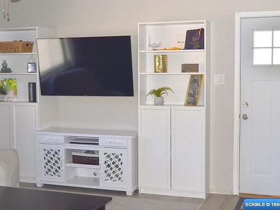This very unique Tyrone home sits on an oversize lot with many practical updates. When walking through the door, you will find a completely renovated space with engineered hardwood flooring throughout the main living spaces, stainless-steal kitchen appliances, quarts counter-tops, an on-demand hot water heater, and a built-in water softening system.The back yard is a perfect place to entertain with an enclosed yard and a covered patio,a beautiful set of french doors lead into the dining room. When entering the dining space you will notice there is also plenty of space for a pantry and coffee bar or any other storage that you may need. The additional room that is now used as a sitting area can be converted into a breakfast nook or sun room and bring natural lighting into the open living floor plan. The bathroom is accessible from the bedroom hallway as well as the living space which makes it functional for everyday use and special occasions with guests. It is an absolute must see!