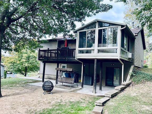 Discover this inviting bi-level home featuring three bedrooms and 2.5 baths. The property boasts a climate controlled four-season room perfect for sipping your morning coffee or unwinding after a long day, a charming deck, and a walk-out basement leading to a covered patio. Enjoy the ample backyard with a secluded wooded atmosphere, along with a storage shed that offers additional 3 sided covered storage space. The family room includes a cozy wood-burning fireplace for those relaxing evenings. You'll also find a generously sized master suite complete with a full master bath. The lower level of the home is finished and features an additional family room, a convenient half bath, and a laundry area. Notable updates include new exterior insulated siding installed in 2021, a brand new furnace and A/C, a new water heater, and a roof that's less than a decade old. Convenience is key, as this home is conveniently located near shopping, dining, schools, and offers easy access to the interstate. Additional Rooms: Sun Room