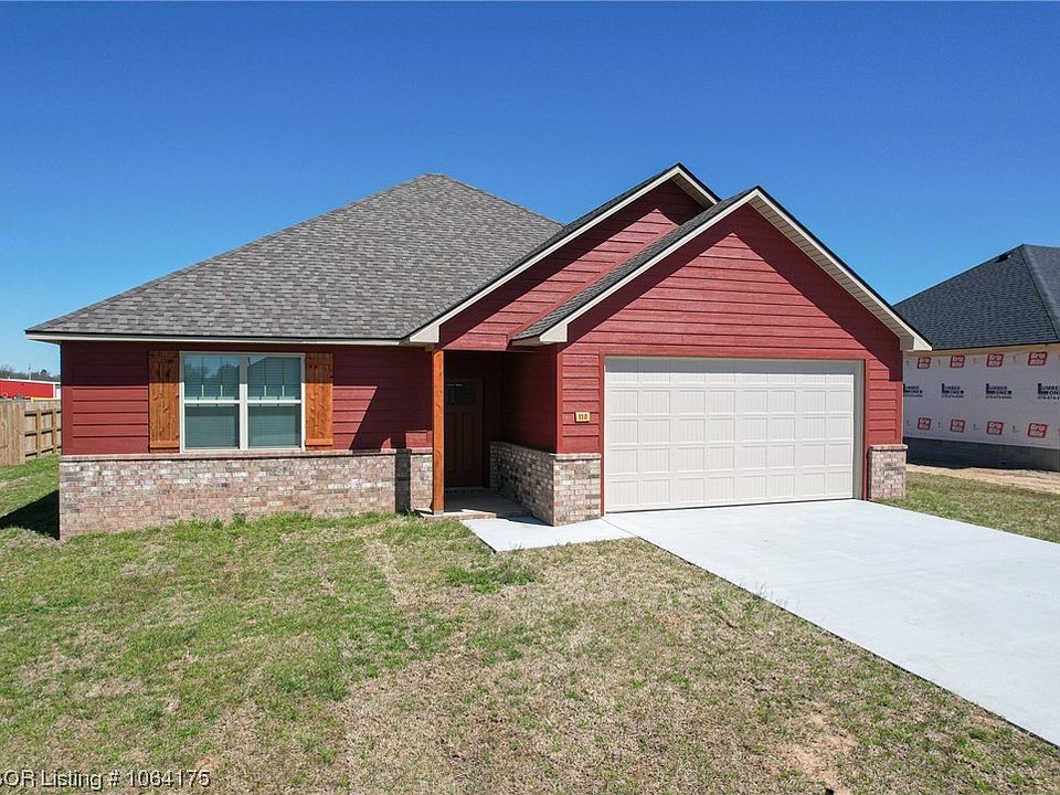 Beautiful nearly new (built 2023) 3 bdr, 2 bath, 2 car garage home only minutes to Fort Smith! Open floor plan, split bedrooms, high ceilings, gas hot water tank, gas high efficiently heater, covered back porch, Stainless steel appliances, wood look vinyl plank thru out home, Led lights, granite, stained custom knotty alder cabinets, custom faux wood blinds, architectural shingles and a generous yard. Protective covenants in place but no POA dues. Owner/agent