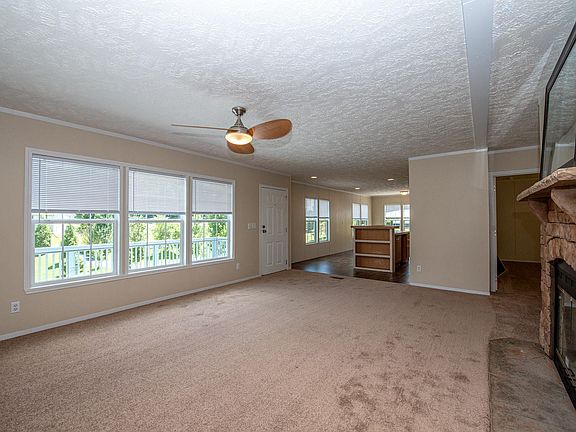 Don't miss out on this Beautiful 3 Bedroom 2 bath Home on a permanent foundation. 1.13 Acres of property with a grassy knoll in the back yard. Large deck in the front and large covered deck in the rear. This gorgeous home offers an open floor plan with split bedrooms. Large kitchen with appliance allowance, plenty of cabinet space, large Island, pantry and dining room. Large family room with stone fireplace, Large utility room with plenty of storage, built-in drop zone and wash sink. Spacious master bedroom with computer station, walk-in closet. Master bath has double sinks, soaker tub with stone surround, separate walk in shower. Walk-in closets through-out. New carpet, new vinyl, and fresh paint throughout. New gravel driveway and water heater. HVAC has been professionally inspected and in great working order. Very serene, country setting yet still close to town.