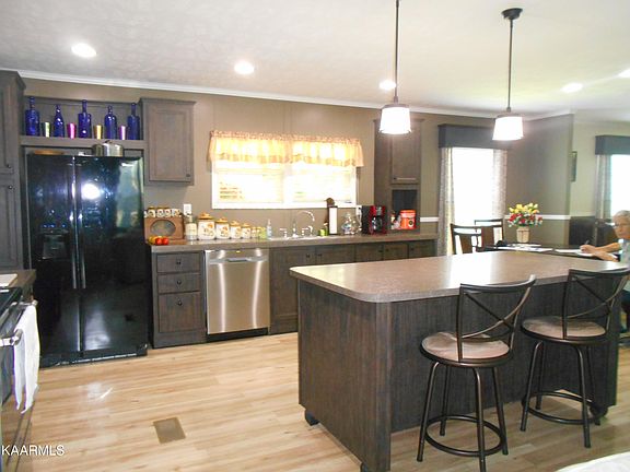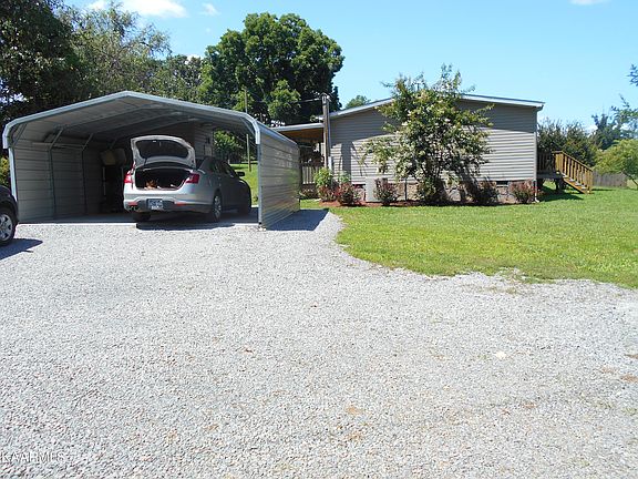 Immaculate quality home on solid mountain stone foundation. Beautiful well kept lawn with lovely landscaping. Enclosed carport with concrete pad and storage room. Covered back porch makes so nice to sit and watch the rain . Area is very quiet and convenient to I-75. Living room, kitchen and dining area , and den are sheetrock walls , nice white trim and chair rail. Built in entertainment cabinet in den area . Huge island /bar ,open floor plan, nice master suite with split bedrooms. Master bath has built-in cabinet over the toilet, double sinks and large walk-in shower. Kitchen has newer appliances. Floors are nearly new. Light rustic hickory laminate throughout. Bedrooms are good size with adjoining bathroom. Pantry in laundry room as well as one in the kitchen.