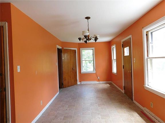 This Quaint Cape cod with brick exterior sits on almost an acre of property! One integral garage, driveway and on street parking offer plenty of room for guests! The Large eat-in Kitchen with updated cabinetry and counter tops adjoins the dining room through a large doorway, making dining and entertaining a breeze! Bright and cheery paint colors make these rooms come alive! The living area offers a brick fireplace and hard wood floors, that, with a little TLC will be gleaming like new again! One bedroom is located on the lower level that could easily be used as a den or office space. Upstairs are the remaining bedrooms and full bathroom. The upstairs bedrooms offer a blank slate to make this house personalized! Only a little TLC is needed to bring this house to its full potential!