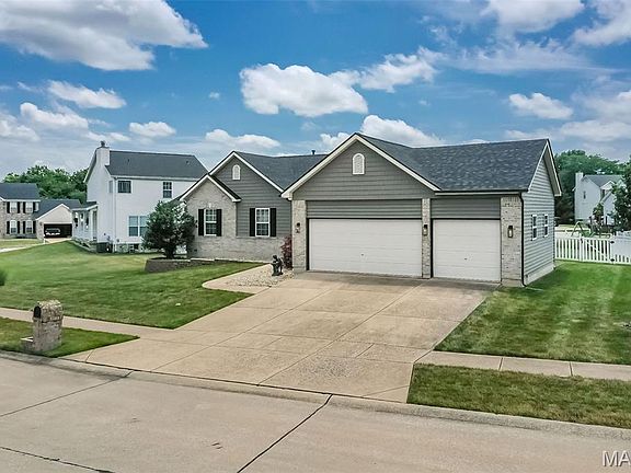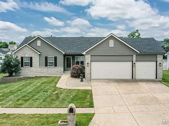 Welcome to this stunning great room ranch offering the perfect blend of style, space, and updates! Step into an open and airy floor plan featuring a Vaulted Great Room with Gas Fireplace! Gleaming wood floors in the kitchen. The gourmet kitchen is a showstopper with 42-inch white cabinets, granite countertops, ceramic tile backsplash, stainless steel appliances, and a large center island—ideal for entertaining and everyday living. The Vaulted Master Bedroom Suite features a Bay Window, a Walk-in Closet and Whirlpool Tub & Separate Shower! This beautiful home boasts an Oversized 3-car garage with access to the unfinished side of the basement, main floor laundry, and NEW Plush Carpeting throughout the Main & Lower levels. Partially finished lower level features a rec room and half bath plus plenty of unfinished space for storage! Major upgrades include a BRAND NEW architectural roof, siding, gutters, fascia, some new light fixtures, some freshly painted rooms —all done for peace of mind. Enjoy summer evenings on the covered patio overlooking the vinyl-fenced backyard, perfect for pets and play. This one checks every box—move-in ready and meticulously maintained!