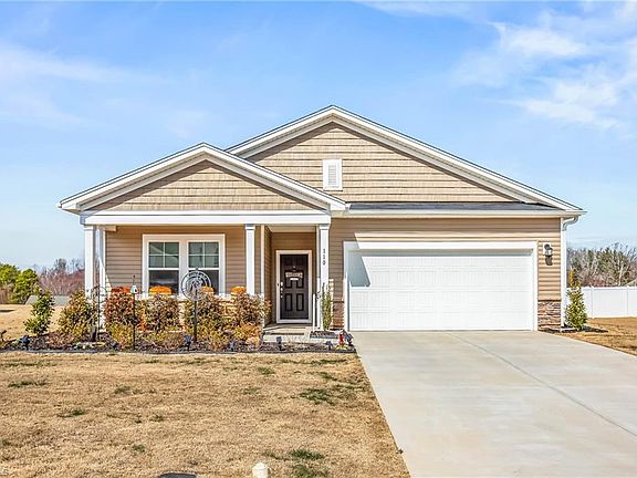 Rare opportunity to live in this established community where all construction is complete. This meticulously maintained home is located just inside the city limits of King, nestled at the beginning of a cul-de-sac. Views of Pilot Mountain from dining area and screened in patio. Mountain views from double windows in master. This home is loaded with upgrades! Upgrades include pendant lights and ceiling fans, instant hot water, freshly painted garage with baseboard added, additional exterior outlets, upgraded kitchen faucet and garbage disposal, blinds remain. All making this home better than new. Split bedroom plan and open concept living area. Abundant cabinet and counter space in kitchen. Island for extra seating. This home is sure to please. Schedule your showing today before it's gone!
