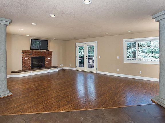 Great Heights rancher elevated on Crestline with master bedrooms and laundry possible on both levels. Large open living room to dining room with french doors opening to large trex deck from living room and sliding door opening to patio from the dining room. You'll love the kitchen with abundant counter and cabinet space, and gas range with hood. Downstairs has a huge living or multipurpose room and currently a master suite. Lard terraced fenced yard out back with mature trees, patio, shed and fire pit.