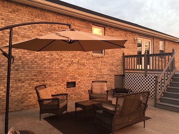 Better than new! You won't believe your eyes when you see this gorgeous move in ready one level all brick home! Beautiful cabinetry throughout. Wood laminate flooring, fireplace in living room, spacious open floor plan! Nice over size deck and large patio leading out to a nice large fenced yard with spacious storage building! Security system and more. Priced to sell! This one is a must see!