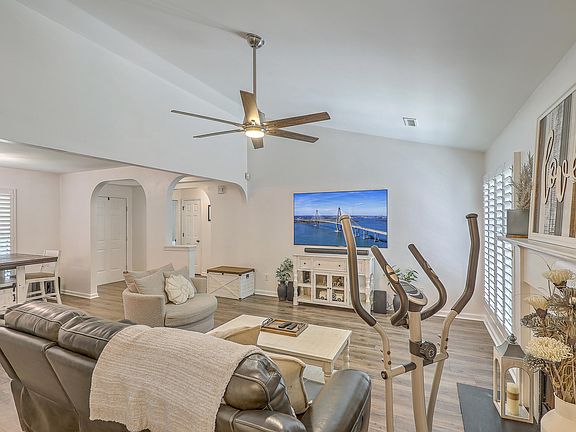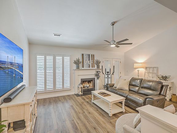 NO HOA! Immaculate and move-in ready! This brick front home is situated on over a quarter acre lot. It is in the established community of Ryan Creek. As you approach you will notice the extended driveway providing plenty of parking. Upon entering you will be greeted in the foyer with a tray ceiling and large arch doorways. The beautiful wooden luxury vinyl plank flooring is throughout the main living areas. The semi open floor plan and vaulted ceiling gives a larger than life feeling. The family area has a wood burning fireplace and a new ceiling fan. The dining area is open to the kitchen. It has a large window that provides lots of natural lighting. The kitchen has marble counters. The white cabinets have undermount lighting and crown molding. The new stainless appliances include a built-in microwave and a smooth top range. The split floor plan provides privacy. The primary bedroom is located off the family room. It has crown molding and a tray ceiling with a new ceiling fan. The arch door leads to dual closets. Just beyond them you will find the updated primary bathroom with a tub/shower combo. The two additional bedrooms are located off the foyer. The second bedroom has a sunburst window and vaulted ceiling with a new ceiling fan. The third bedroom also has a new ceiling fan. The updated hall bathroom has a tub/shower combo. The laundry room is conveniently located behind the barn door off the kitchen. It leads to the garage. As you exit to check out the large backyard you will find this home is great for outdoor entertaining. The screen room with its beautiful ceiling and ceiling fan is perfect for enjoying the outdoors bug free. The large patio is perfect for grilling and enjoying the sun. The amazing gazebo with a ceiling fan has power. That makes it a great place for watching the games. The wooden fence makes it great for family pets. You can enjoy the cool evenings making smores around the firepit. The 2-car garage is well lit and has an opener. The extended driveway runs through the backyard to the 10 x 16 storage building. Some of the many features include plantation shutters, smooth ceilings and fresh paint throughout, new fixtures and ceiling fans, gutters installed in 2022, roof replaced in 2018. Located within walking distance to a play park. Conveniently located near shopping, dining, and a hospital. It's also only 6 minutes to I-26 and 18 minutes to the naval weapons station.