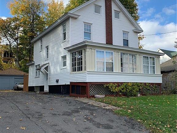 MOVE RIGHT IN! Spacious Eastside Home featuring 3 Large Bedrooms, 1 FULL bath, and a Half bath on the First level. GLEAMING Hardwood Floors. BIG Kitchen, newer cabinets, Tile back splash, LED lighting. Generous sized Formal Dining, Comfortable Living Room with Wood Burning Fireplace. Enclosed front Porch. Many newer Vinyl windows, Upstairs are the bedrooms some with recessed LED lighting + Ceiling Fan, 2nd Enclosed Porch & Full Bathroom. Finished walk up attic is AWESOME!! 2 CAR detached Garage w/ power! Two tiered 12 x 16 DECK w/ privacy Fence. Partially fenced yard. High EFFICIENCY furnace! Maintenance FREE Vinyl Siding. Much to LOVE about this Home. Sold as-is. Make it YOURS today!