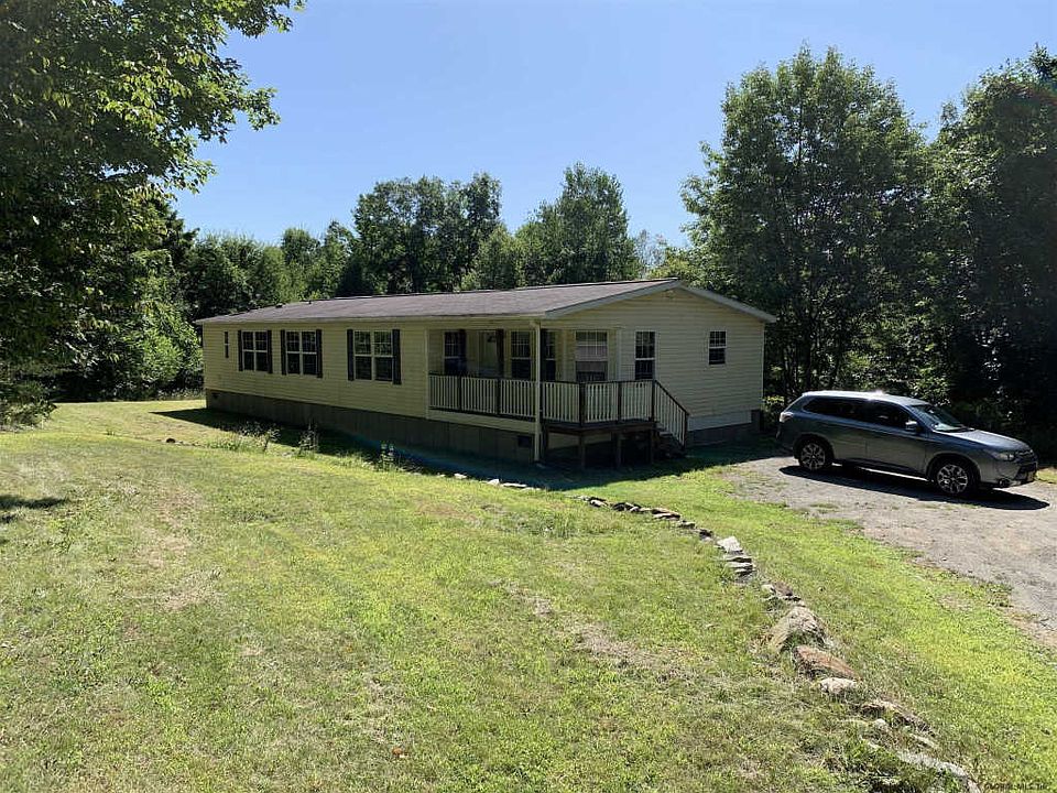 Well maintained double wide on private 4 acre parcel. Kitchen with pantry and breakfast room, open-concept living/dining room with office (or 3rd sleeping area). Large master suite with walk-in closet and soaker tub. Spacious, second bedroom and another full bath, and laundry area. New laminate flooring, updated electrical and plumbing. Conveniently located just minutes from Gull Bay beach and boat launch on Lake George. Easy access to Rutland, Glens Falls and Ticonderoga.