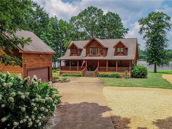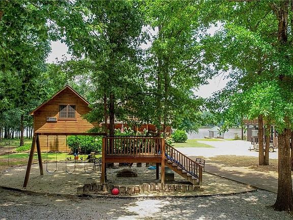 The catfish are jumping and the breeze is wonderful! You can sit on the covered deck and enjoy the view while living in a gated community. Immaculate log home with 8 inch walls includes a large porch, covered deck and separate patio. A detached garage, boat house, boat dock and $7,000 playground that stays. The landscaping is outstanding. Home has hosted parties for over 50 people and can sleep 20 people. Many extras!