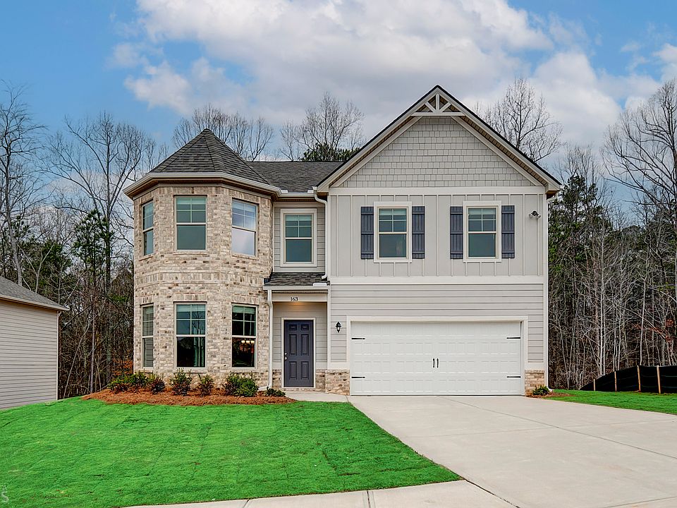 The Everest floor plan by DRB Homes, 5 Bedroom | 3 Bath showplace features: Spacious open Family Room, Breakfast Room and Gourmet Kitchen, Shaw luxury vinyl plank (LVP) flooring in common living areas on first floor & all baths & laundry, Linear Luxury Fireplace in Family Room, Quartz Breakfast Bar, Quartz Countertops, Tile Backsplash, Pantry, Plentiful cabinetry, Stainless Steel appliances (microwave, dishwasher, electric range), Garbage disposal, and Twisted Metal spindles. Owner suite features spacious sitting room with tray ceiling. Owner suite Bath features, Dual vanities, separate garden tub and shower, 2" faux wooden blinds throughout. Transferable termite bond, Total electric, Architectural Shingles, Front-entry 2-car Garage with wi-fi enabled Openers. Patio (10d x 12w). 9' ceilings on main floor. 10 year limited warranty by RWC. DRB HOMES quality from the ground up! *Photos are not of actual home!