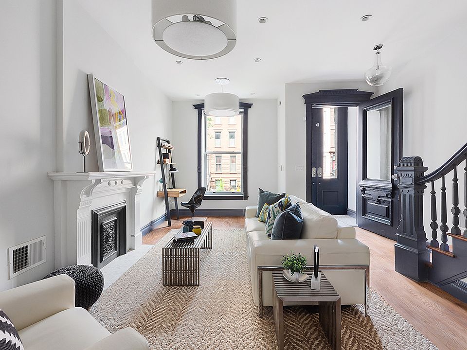 Beauty in Bed-Stuy! An impeccably renovated 2657 sq ft 2-family home awaits in one of Brooklyn's most desirable neighborhoods. Enjoy luxury living in the stunning owner's triplex with a private rooftop deck, while generating great rental income from the spacious garden-level apartment. This gem is a unique offering for the discerning buyer seeking a tasteful blend of classic charm and the finest modern luxuries. Exquisite details abound, from the rich hardwood floors that pour throughout to the gorgeous millwork, moldings and fireplaces. Bathed in natural light, the fabulous triplex affords gracious living and dining space for entertaining on the main level, served by a top-of-the-line fully renovated chef's kitchen. Generously-sized bedrooms on floors two and three invite comfort, with light-filled windows, well-appointed en-suite baths and abundant closets. Ascend to the private rooftop that looks out to treetops, cityscapes and blue sky, perfect for hosting cocktail parties, reading the paper, or enjoying a morning coffee. This wonderful oasis is accessed by a unique and intuitive automatic sky-door, designed to minimize framework and maximize daylight, delivering a direct line of sight to the sky above. As enchanting and exceptional is the one bedroom one bathroom garden-floor apartment with its own large sunny living space, thoughtfully-designed renovated gourmet kitchen, well-proportioned bedroom and stylish full bath. From the kitchen you can step out to the incredible fully-fenced private backyard complete with a patio and grassy area. Each residence also comes with its own washer and dryer for in-home laundry convenience. The tree-lined street and sought-after neighborhood are added bonuses. Nearby are lots of attractions like parks and playgrounds, excellent shopping, tantalizing restaurants like Peaches and Saraghina, Fine Fare Supermarket, plus the A and C subway lines.