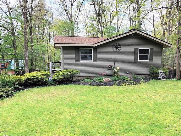 A wonderfully located cottage in walking distance to Lake Wallenpaupack and close to restaurants and stores. The wonderful curb appeal as you enter this home will make you fall in love. As you enter you will love the kitchen with granite counters and beautiful cabinets that have pull out shelves. The bedrooms are large enough to accommodate with a nice updated bathroom. Below is a full basement that has a partially finished room that can be used as an office or bedroom. The living area has a wood burning fireplace and the deck is L-shaped for all your outdoor enjoyment. This home comes with a second lot. The second lot has a vegetable garden and shed. As you walk around this home you will enjoy all the beauty of nature! This home is truly low maintenance and a perfect vacation or full