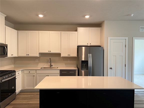 BRAND NEW! This gorgeous slab on grade is built for easy living. 9' ceilings and LVP throughout most of the main level. Wrought iron open handrails greet you at the front door. The main living space boasts an open and modern concept. The impressive L shaped kitchen complete with all stainless steel Whirlpool appliances. Gas range with 5 burners, overmount microwave vented to the exterior, dishwasher, and side by side refrigerator INCLUDED! The only unit to feature a 10x10 concrete patio off the rear. Your accessible first floor master suite features tall windows and a private master bath. Bath includes dual vanities, walk in shower with glass door and moveable bench, as well as LAUNDRY HOOKUPS for easy first floor living! 2nd floor boasts an impressive loft for entertainment, 2 large bedrooms, an additional laundry hookup, 2nd full bathroom with fiberglass shower/tub, and a spacious attic perfect for storage!