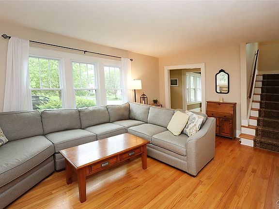 Located in the desirable Dewittshire neighborhood, this classic Colonial Revival has been thoughtfully updated and lovingly maintained. A curved paver walkway leads to the charming front entry beneath a small portico, while gabled rooflines, freshly painted scalloped siding and mature landscaping enhance the home’s timeless curb appeal. Inside, gleaming hardwood floors and open archways create a seamless flow throughout the main level. The naturally lit den/study offers a comfortable space to work, read or unwind. The inviting living room is perfect for gathering—featuring a striking stone fireplace framed by built-in Craftsman-style shelves, nooks, and cabinetry. Entertain with ease in the formal dining room, which opens into both the kitchen and family room. The step-down family room adds casual comfort, featuring a gas stove and walls of windows that frame backyard views. The kitchen offers ample cabinetry and counter space, stainless steel appliances, pantry and direct access to the backyard. A renovated powder room and a mudroom addition complete the first floor. Upstairs, you'll find three bedrooms, including the primary, and a beautifully updated shared full bath featuring basketweave tile flooring, framed panel walls and a soaking tub. Classic touches—like glass doorknobs and built-in hallway cabinetry—enhance the home's character. The finished lower level adds 386 square feet of versatile living space—ideal for a media room, playroom or guest area—with additional storage included. Outdoors, enjoy a private, fully fenced and level backyard featuring an expansive paver patio, in-ground pool and a newly built stone wall. A whimsical tree fort adds a playful touch, while the detached two-car garage offers added convenience and storage. Offering classic charm, a prime location and turnkey ease, this beautifully updated home is ready to make your own. An added 686 sq ft—including a 240 sq ft Family Room, 60 sq ft Mud Room and Lower Level space—is included in the total, per the homeowner. Located within walking distance of Moses DeWitt Elementary. Best and final offers are due by Saturday, 5/24/25, at 5:30 PM. Thank you!