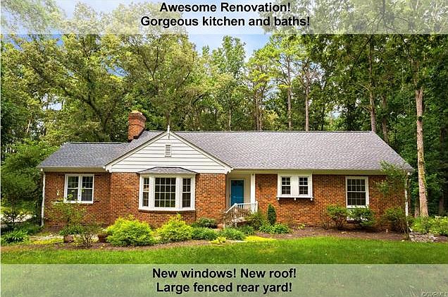 Enjoy quiet, private country living just minutes from 288 and all the great shopping and restaurants of Short Pump! All brick! Beautifully renovated all new kitchen and baths featuring the latest trends! Hardwood floors! New windows! New roof! Walk-out basement with finished utility room and workshop area! Total sq. ft. is 1989 including basement! Great deck overlooking large fenced rear yard! You will love it! A must to see! Better hurry! Won't last! (Fireplaces, chimneys and flues, laundry room refrigerator and washer and dryer sold "as is" (never used by current owner).