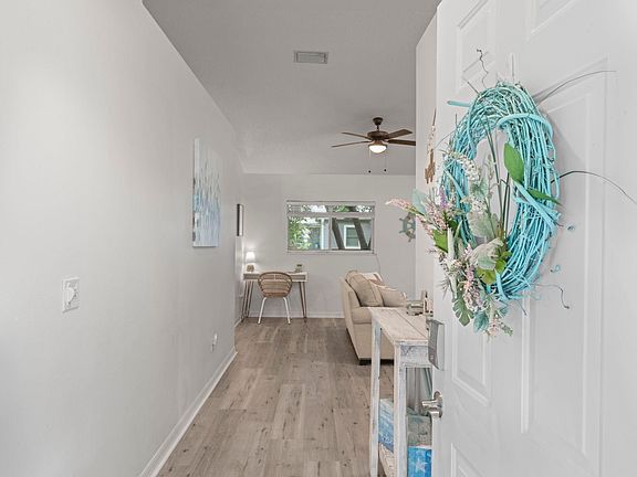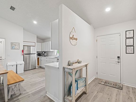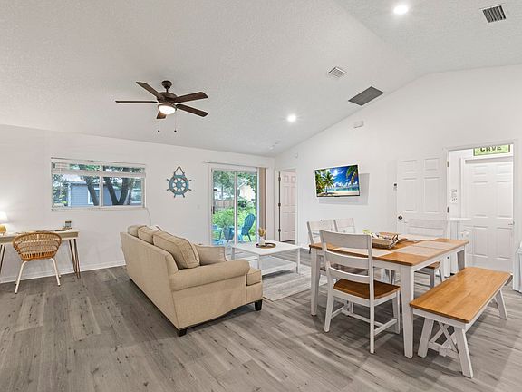 Nestled in the quiet and well-established St. Augustine South neighborhood, this beautifully updated 3-bedroom, 2-bathroom home offers the perfect blend of comfort, convenience, and Florida charm. Remodeled in Nov. 2024, with new cabinets, counters, floors, many appliances, new paint inside & out, and much more. Comes fully furnished. With no HOA or CDD fees, you'll enjoy the freedom to make this home truly your own. Step inside to find soaring cathedral ceilings, light coastal colors, and luxury vinyl plank flooring throughout, creating a bright and welcoming atmosphere. The spacious kitchen features stainless steel appliances, ample counter space, and a charming window over the sink that overlooks the front yard. The two guest bedrooms share a well-appointed bathroom with a shower/tub combo, while the large primary suite offers a walk-in closet and an ensuite bathroom with a shower/tub combo. Outside, unwind on the back patio overlooking a peaceful, tree-lined yard with a small creek running through—your own private retreat. There's plenty of parking in the extra-long driveway, perfect for your boat, RV, or travel trailer. Enjoy peace of mind with a 2019 roof, 2020 HVAC, 2020 water heater, and new septic tank in 2024. Located just a short walk to the Matanzas River and Doug Crane Boat Ramp, and less than 5 miles to St. Augustine Beach and 5.5 miles to I-95, this home is close to shopping, dining, and all the best of St Augustine living. Whether you're looking for your first home, a vacation getaway, or an investment opportunity—this one checks all the boxes!