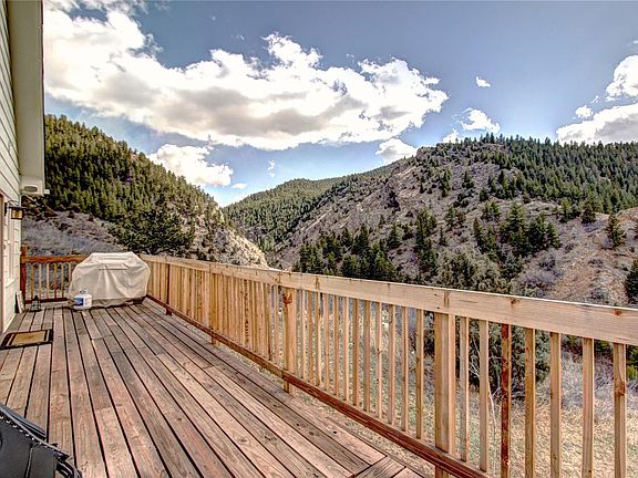 Amazing mtn site in gorgeous canyon setting. 3-bedm, 3-bath home near Douglas Mountain Ranch. Quick commute to Denver Metro; short drive to Evergreen and to Golden/Lakewood, easy access to ski resorts, river rafting, fly-fishing. Walking trails in the area. Minutes to the casinos. This lovely updated home has a gorgeous kitchen with high-end stained cabinetry & granite counter tops and Heartland Stove and Range with a new buffet-cabinet added to the kitchen. Spacious dining room, and very comfortable living room. Guest bedroom on main level. Spacious master & upstairs bedroom. Beautiful tile bathrooms w/ 5-piece bath. Media room and with lots of room to lounge in the separate rec-room. Basement & upstairs have new electronic blackout shades worth $4k+. Well water filtration system. Newer furnace and hot water heater, new AC, newer radon mitigation system, and updated electrical panel. You'll enjoy the amazing views from the wrap around deck. Hot tub stays. Storage shed in back.