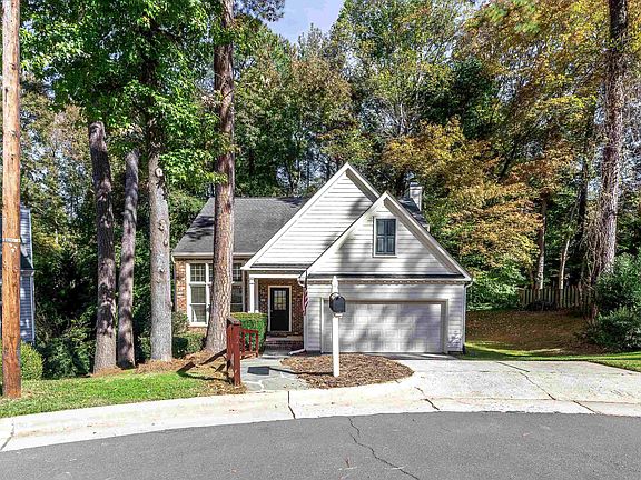 Check out this spacious 3 BR 2.5 Bath, cul de sac home in desirable Cary location, minutes from downtown! This home, nestled on almost a 1/3 of an acre that extends a great deal past (or well beyond) the fence put up for their dog. The home has a huge unfinished basement with an additional large basement storage area. Yes, the ping pong table conveys! Downstairs is floored with Lee’s Hardwood Floors throughout and has a spacious living room and an adjacent nice size family room with a gas fireplace, a separate dining room and a breakfast nook off the kitchen overlooking the backyard where deer are often seen. The large owner’s suite features a vaulted ceiling and a large bathroom (garden tub, dual vanity) and a roomy walk-in closet. The upstairs hall leading to the other two bedrooms overlooks the living area downstairs. Every room has a ceiling fan, and all the windows are adorned with Joanna’s Plantation Shutters. The Frig, washer/dryer convey.