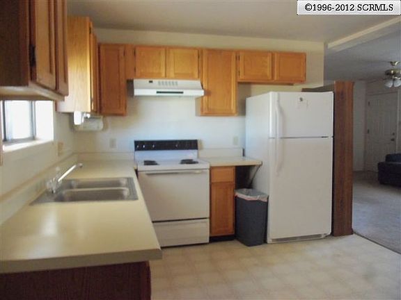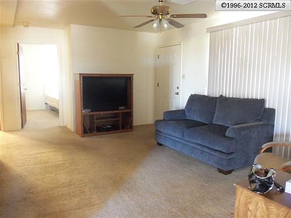Centrally located, easy care maintenance home is ready for you to bring your personal touches to. It is NOT a manufactured home - it is modular, built in two sections and assembled on site. One owner home has been well kept with new water heater, evap cooler, and refrigerator in past two years. Home was built with handicap accessibility in mind with wide door openings and a concrete ramp to the back door under the carport. Includes nice little storage shed in back yard, which is completely fenced, and gravel all the way around for easy maintenance. This property is Broker owned.