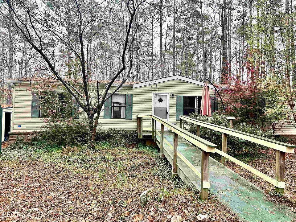 Manufactured Horton Home on 1 acre of land. Location is very convenient to the lake where there's access to Lake Sinclair - Near Twin Bridges Marina. Lot is wooded, level and has nice privacy - it's a great LOT to maybe even remove home and build. There's a metal carport and storage building. Just a few miles from 441 and Gray HWY for fast access to Macon or Atlanta, or shopping in Eatonton. Home needs TLC, and sold As IS.