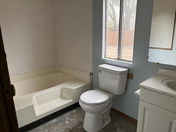 Good sized 2 bed 2 bath on a quiet block of Pueblo west. Excellent views, beautifully treed lot, your own oasis where deer frequently visit. An entertainment deck, with seating and private fenced area with large entrance gate. Both bedrooms have private entrance. Freshly remodeled with crisp; brand new paint and flooring. Great living space, huge kitchen, large bedrooms. Tenant responsible for all utilities and renters insurance.