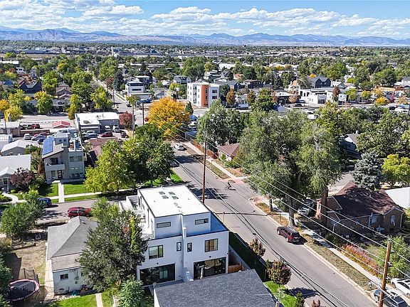 The perfect, like-new contemporary townhome with striking mountain views and sunsets from the private rooftop patio and retreat room with a wet bar and a secluded bedroom with murphy bed ideal for guests or use as office on the private 3rd floor! The open concept main floor plan includes a gourmet kitchen open to dining and living area with quartz composite counters, 5 burner gas stove/convection oven, pantry with pullout drawers and an over-sized island with breakfast bar and waterfall edge. Full height sliding glass door opens to wonderfully spacious private and secluded outdoor patio and backyard with built-in gas fireplace to keep you cozy on those cool nights. Patio and backyard also includes a hot tub, raised garden bed plus a playhouse and sand box for the kids and a storage shed. Second floor spacious primary suite with sitting area is a retreat from the outside world with spacious 5-piece bath complete with soaking tub and oversized frameless glass shower! There are two more bedrooms with full height glass windows overlooking front yard and served by a full bath and a convenient laundry closet in the hall. This home is conveniently located 1/2 block from Rosedale and City of Kunming parks and 2 1/2 blocks from Harvard Gulch Park with soccer fields, volleyball, neighborhood pool, 9-hole golf course, playground and walking/running paths and it is also within just blocks of multiple restaurants and shops on South Broadway. First floor also includes a sunny office/studio in the front with full height glass that overlooks the fenced front yard. Recently painted and custom 2-way blinds (2022), carpeted (2024). Built-in wiring for high-speed internet and audio/visual. Sprinkler system in raised garden bed, front and side.