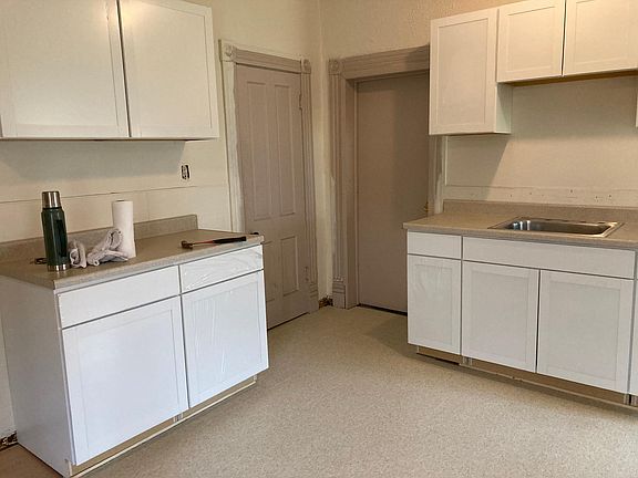 New flooring throughout, new kitchen cabinets, exterior painting scheduled. One Large bedroom and two small bedrooms, bathroom on first floor. Fenced in backyard. Tenant pays all utilities. However, since the city requires $48 per quarter for garbage removal, landlord will add $16 per month to the rent and pay the quarterly fee for the tenant. Lease allows tenant to leave at any time with 30 days notice. Pets are allowed, but landlord requires $25 per month pet fee in addition to the rent.
