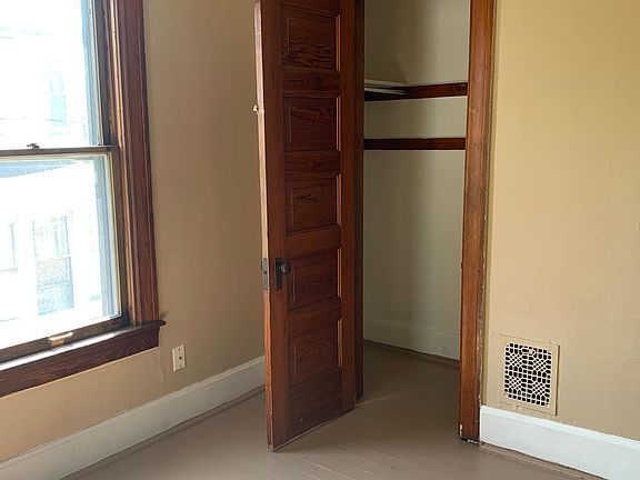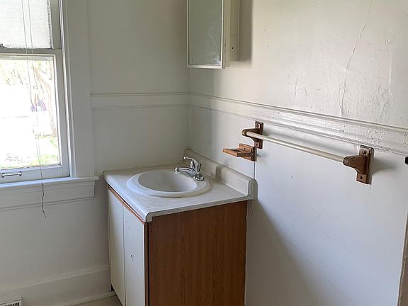 Off the front porch you will enter the unit to the front entry with stairs to the upstairs and access to the living room. Here you will find wood pillars and wood doors that can close of the living room from the dining room. There is a built in cabinet and large walk in closet in the dining room. Through the dining room you will find the kitchen with door to basement with washer and dryer hookup and a door to the back enclosed porch for some storage. Upstairs you will find 3 bedrooms (9'2x10'2, 10"8x11"8, 10'9x10'6) and full bath. Tenant is responsible for all utilities - gas, electric, water/sewer lawn care and snow removal.