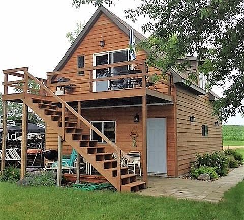 Be on Lake Poinsett for $189,900. This unique property has a double garage that is sheet rocked and has a 1/2 bath and laundry hookups. The upper level is a loft with 3/4 bath,with a full kitchen, living and sleeping area. The owners planned on building a cabin in front of the garage/loft and use the loft as guest quarters. Buy now and enjoy the lake and build your dream cabin later! ALL THE FURNITURE & PERSONAL PROPERTY ARE INCLUDED!
